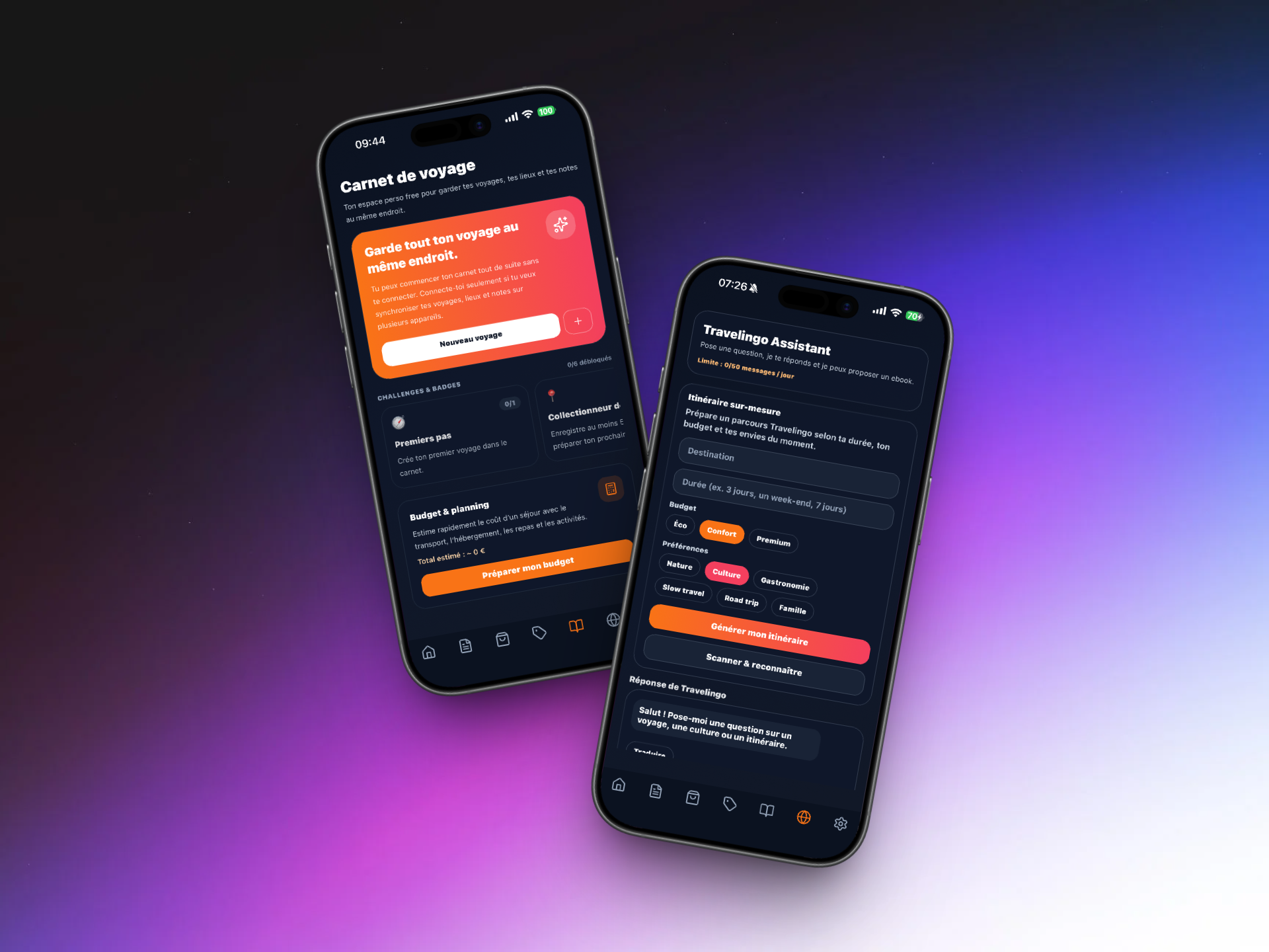 Retrouve dans la même app ton journal, ton carnet, tes contenus voyage et tes outils utiles au quotidien.